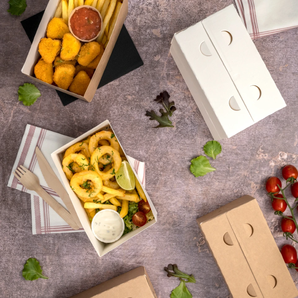 Dalle eleganti scatole kraft per il takeaway alle tovagliette personalizzate, i nostri prodotti uniscono estetica e funzionalità per valorizzare ogni servizio. Ogni dettaglio è studiato per migliorare l'esperienza del cliente e rendere il tuo locale ancora più riconoscibile.